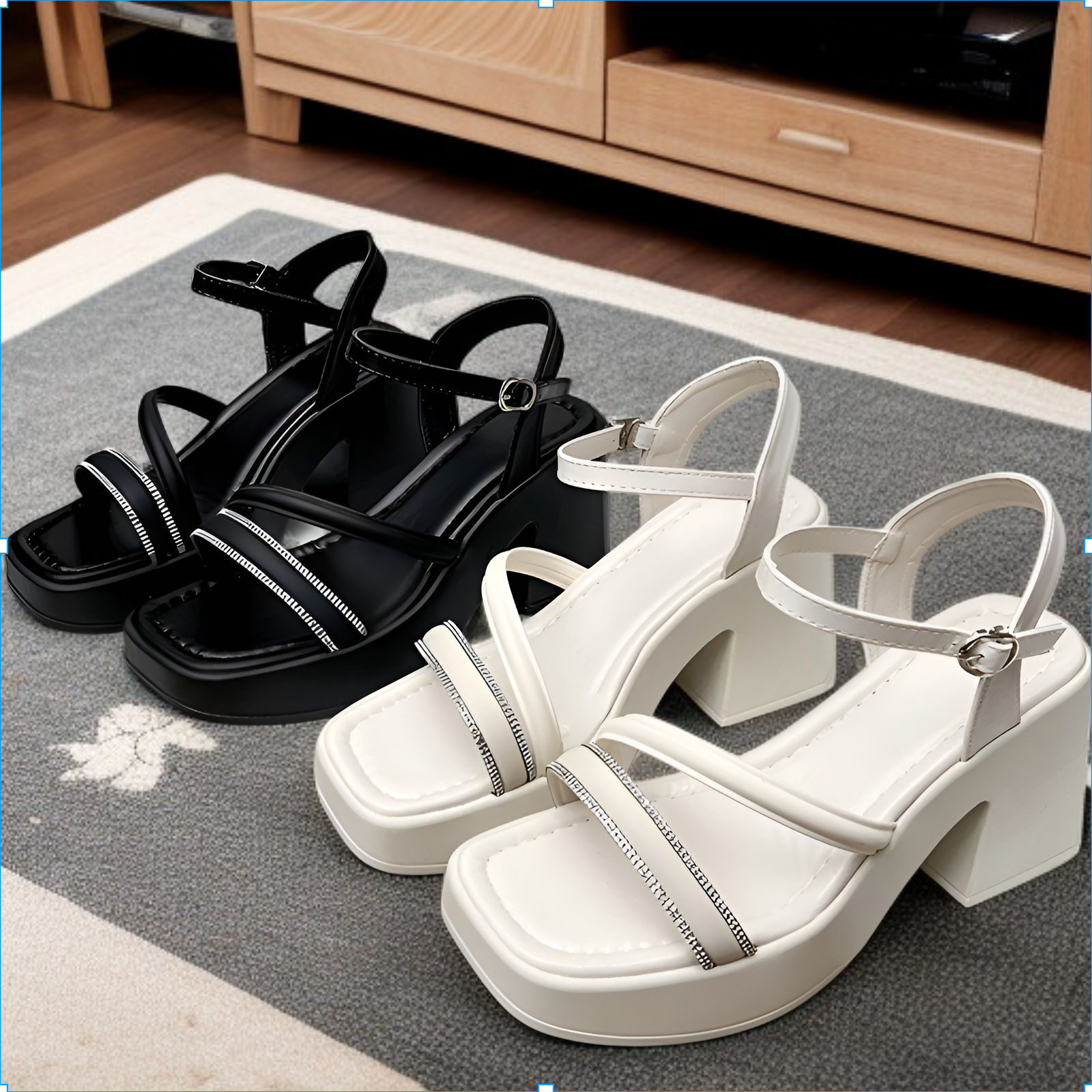 レトロハイヒールサンダルは春のコーデに最適。厚底でスタイルアップ、シングルストラップで安定感。スカートと相性抜群。