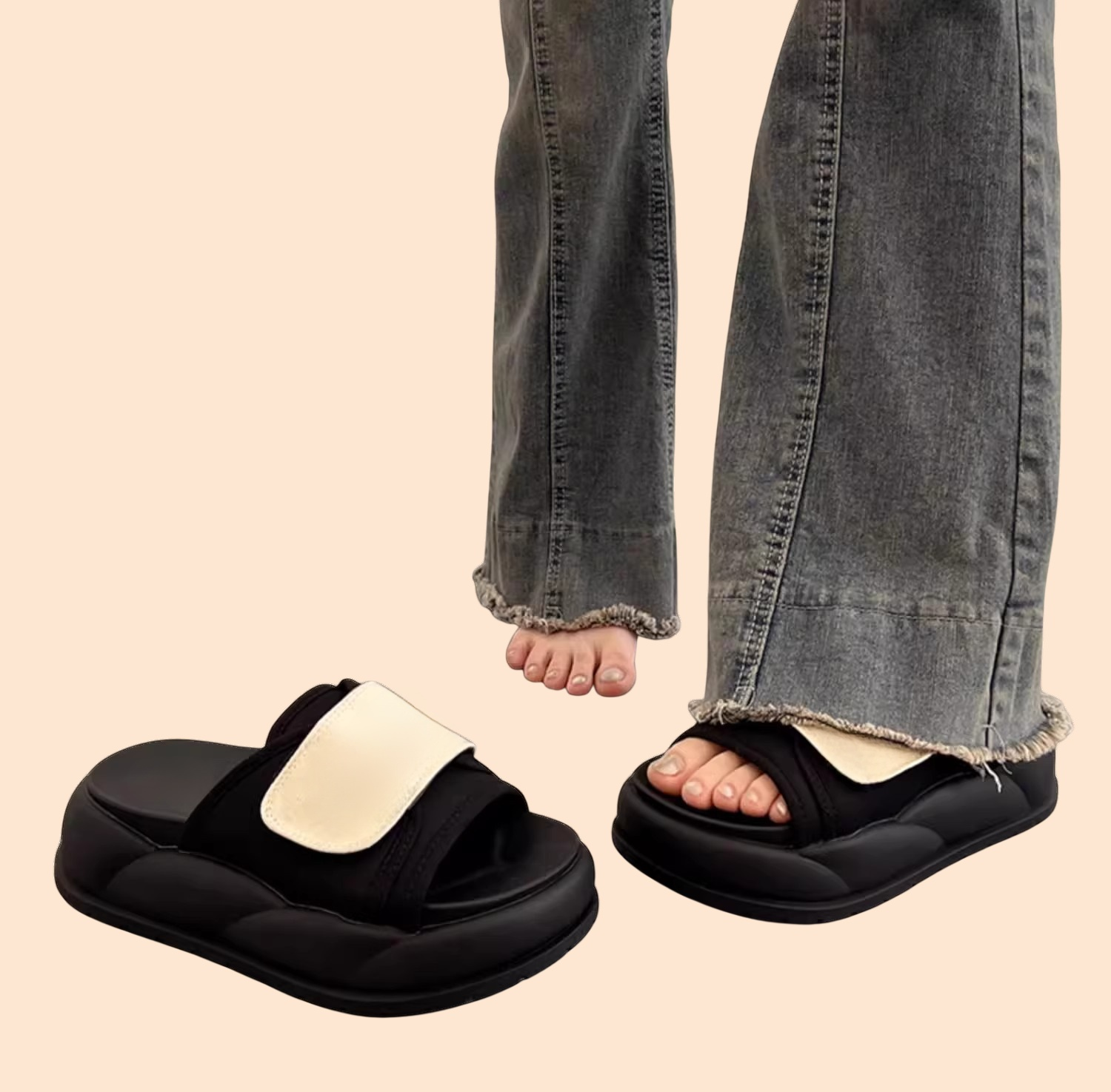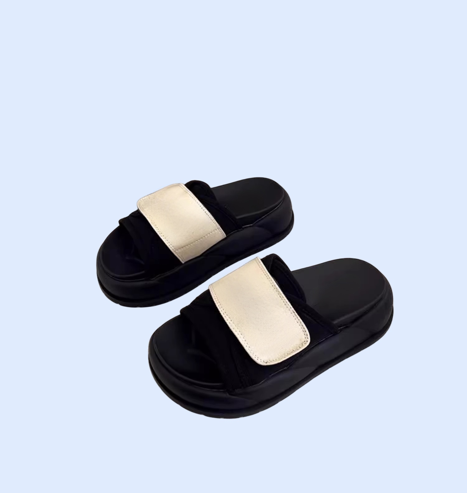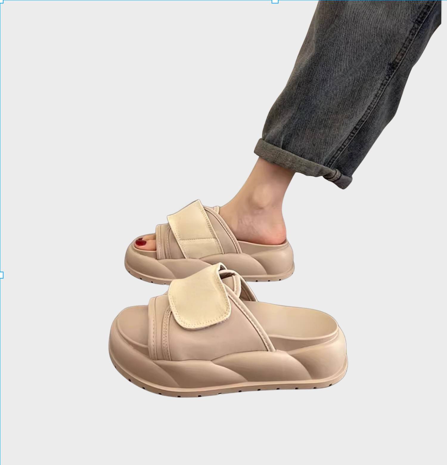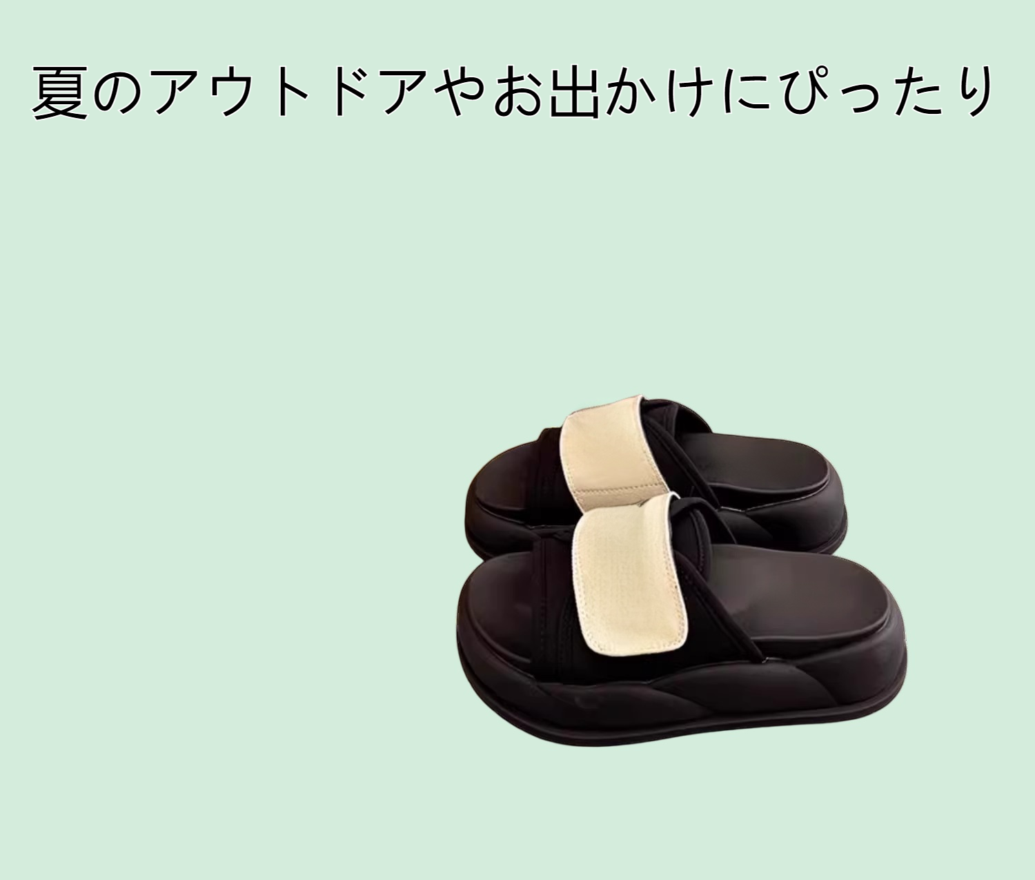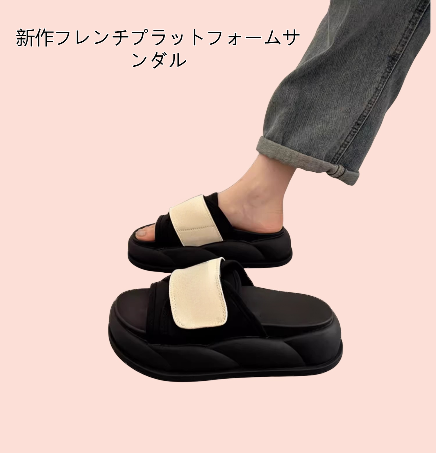 夏の屋外やお出かけに最適な新作フレンチ厚底サンダル。美脚効果と快適な履き心地、スカートに合わせやすいデザイン。