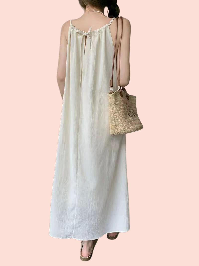 夏の新作フランス風ホルターネックドレスは、体型カバーと細見え効果。軽やかなロング丈で涼しく快適、ニッチなデザインが魅力。
